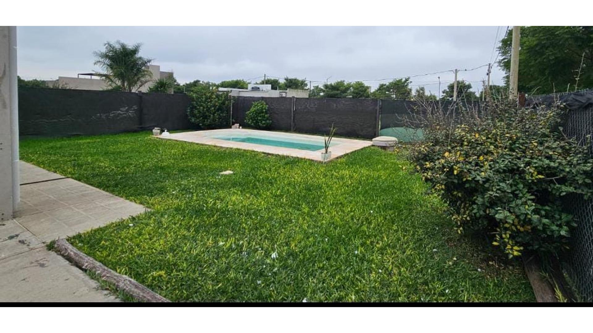 Venta Casa construida en Ladrillos Comunes,Techo de Losa y parte cinc.,con cielorraso de yeso,aberturas de madera y aluminio,pisos ceramicos.compuesta por Living,Comedor,Cocina,3 Dormitorios, dos con Vestidor,1 Baño y ante baño principal,un baño diario,un Lavadero,Cocheras,Parque y Pileta de Natacion con Filtro.Excelente Estado.Consulte.