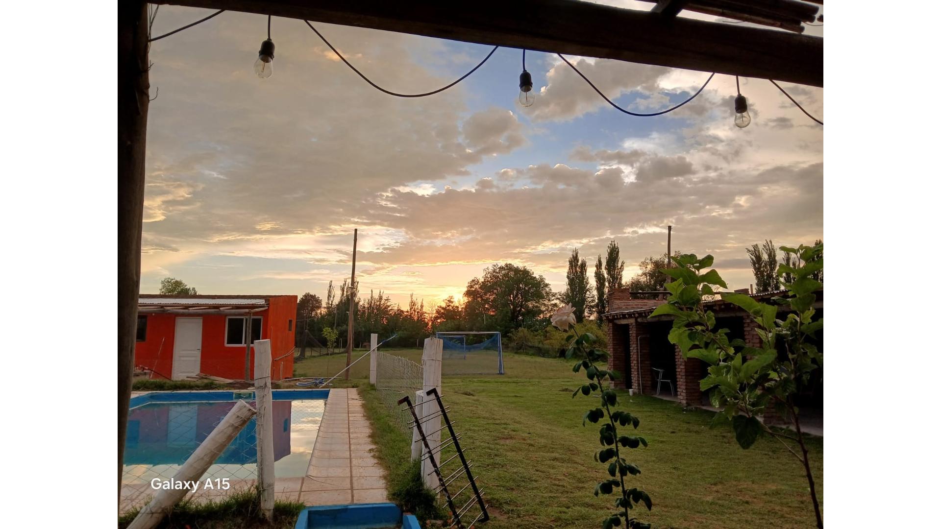Venta en Zona Turistica,Ubicado en San Rafael, Mendoza, Distrito Cuadro Nacional,Calle Los dos Alamos 3350,a 6 Kms.de San Rafael,Kms.0,sobre Ruta que une a Alvear, Mza,Explotacion actualmente Alquileres Temporarios,Compuesto por 3 Cabañas.un salon de fiestas,un Salon Techado,cuatro canchas Futboll, Parrilleros,2 Hornos Barro,Cercado Totalmente,una Piscina 9 x 4 mts,con Luces Musicales,un Pozo agua Cristalina,3.500 mts.de terreno sobre acequia,5.000 mt2s.parque con plantaciones de Ciruelas y Aceitunas.Terreno de 1 Ha. 0054,95 mt2s.Edificacion total de 2.000 mt2s.Excelente Oportunidad.Facildades de Pago a Convenir.Posibilidades de recibir en Canje alguna Propiedad previa aceptacion de parte del Vendedor.Consulte.Vende Ponso Propiedades...telefonos 3406 644022 o 3406 420330.